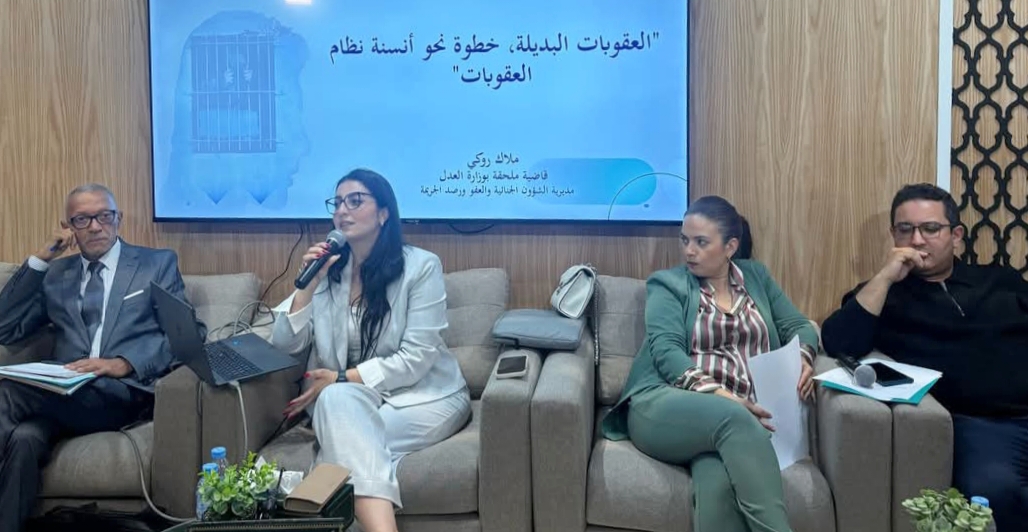 في مداخلة الأستاذة ملاك روكي أكدت أن اعتماد العقوبات البديلة يأتي ضمن رؤية إصلاحية تهدف إلى تعزيز قيم إعادة الإدماج والتأهيل داخل المجتمع، بدلًا من الاقتصار على العقوبات السالبة للحرية.