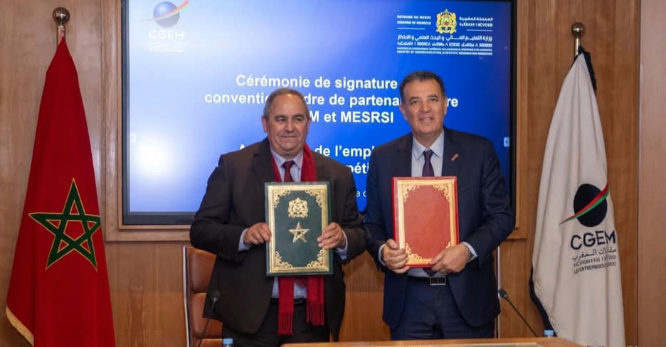 قام شكيب العلج، رئيس الاتحاد العام لمقاولات المغرب و عز الدين المداوي، وزير التعليم العالي والبحث العلمي والابتكار، يومه الثلاثاء 17 فبراير 2026، بالتوقيع على اتفاقية إطار لإرساء شراكة استراتيجية تروم تعزيز التقارب بشكل مستدام بين الفضاء الجامعي والنسيج الاقتصادي الوطني.